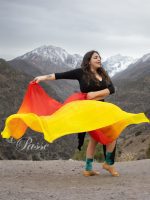 Velos de alta calidad ideal para uso profesional confeccionados con seda natural y teñidos a mano con colores vibrantes, perfectos para realizar figuras complejas y envolventes por su liviano peso. Cuenta con una fina costura en bordes para evitar hilachas. Amarillo, naranjo y rojo.